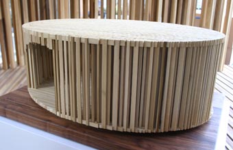 the triangular pavilion is built from sustainable spruce plywood and is called driftwood. It is constructed from slices of plywood assembled vertically on a wooden frame, creating an undulating surface. danecia’s work is based on the bedford square and looks like something that was forgotten by an unknown species. I think, It should stay there forever.